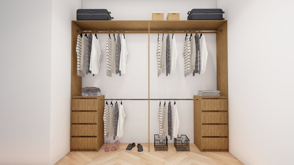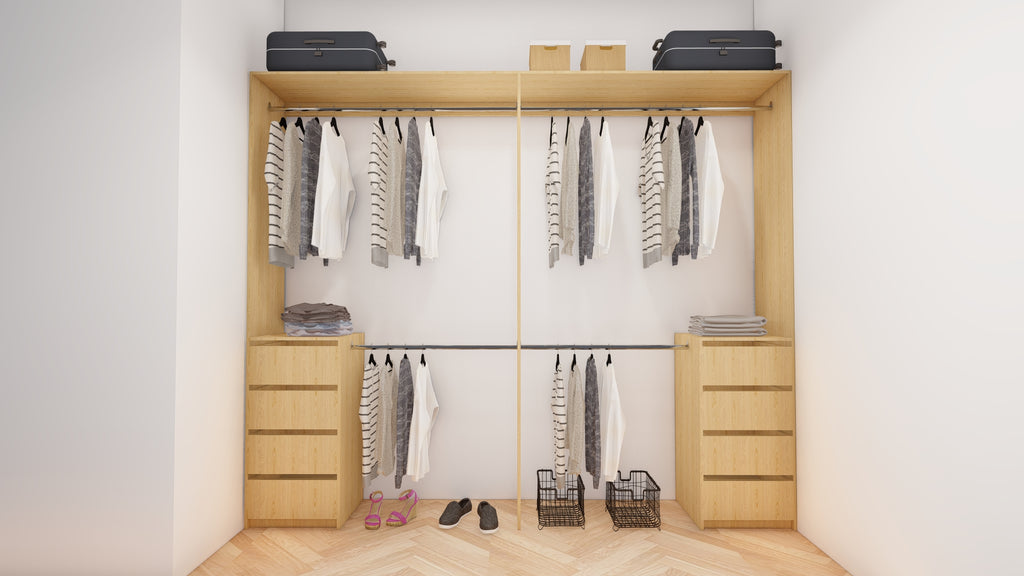 All wardrobes are customisable. If you require additional shelves, drawers, hangers or dividers you can add them via the dropdown menu options.