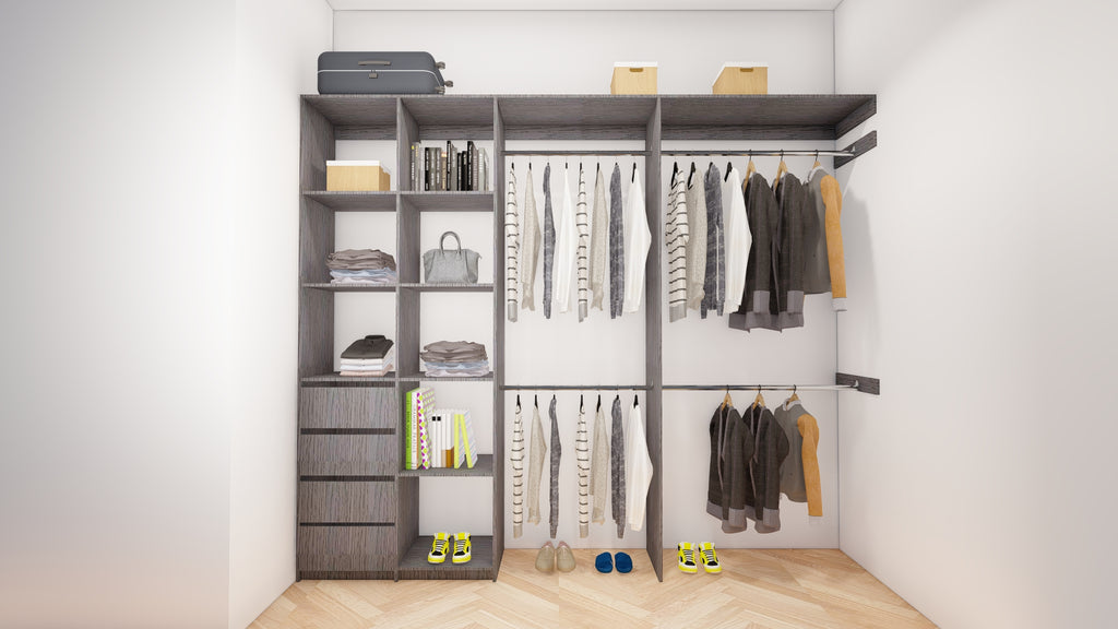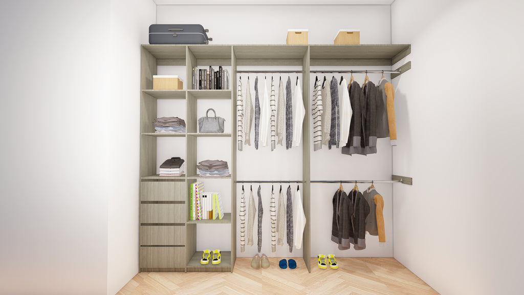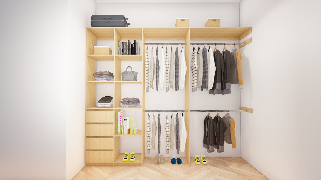 All wardrobes are customisable. If you require additional shelves, drawers, hangers or dividers you can add them via the dropdown menu options.