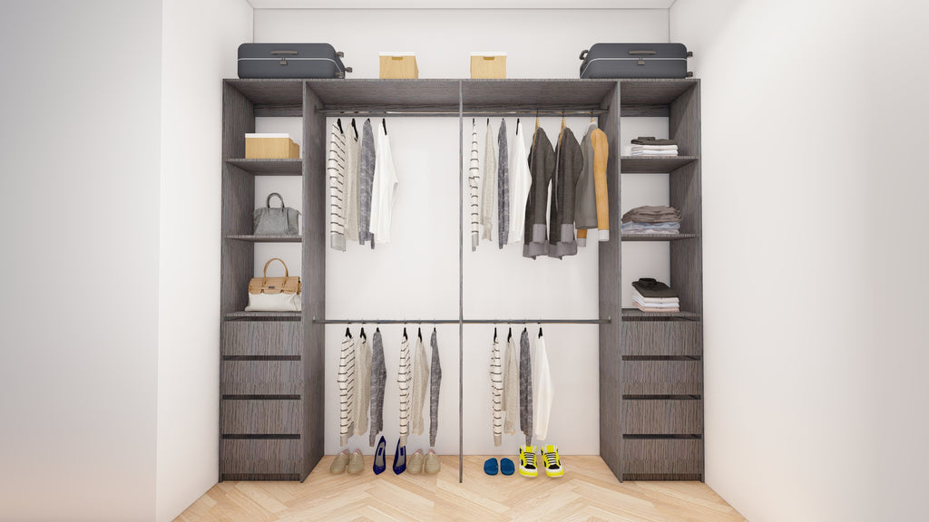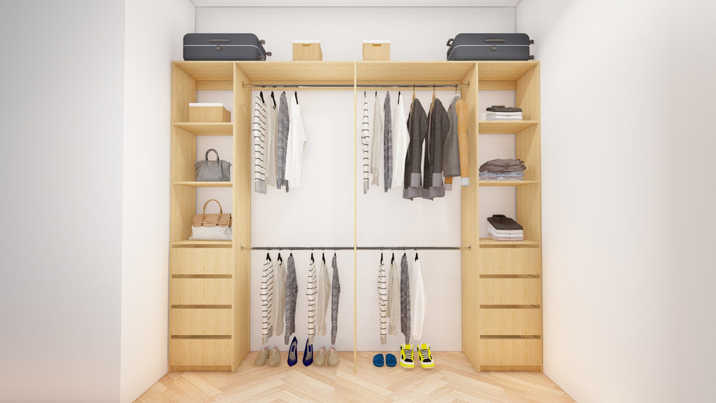 All wardrobes are customisable. If you require additional shelves, drawers, hangers or dividers you can add them via the dropdown menu options.