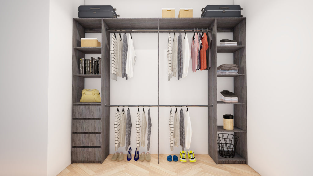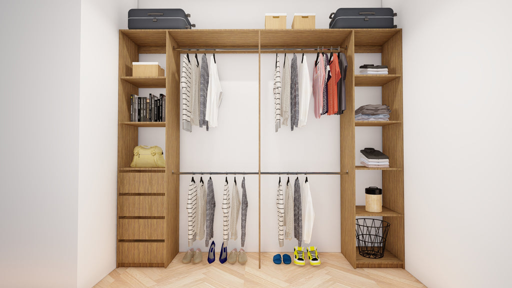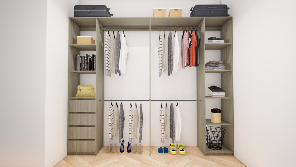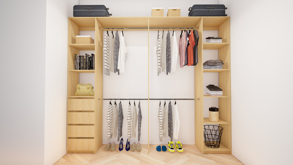 All wardrobes are customisable. If you require additional shelves, drawers, hangers or dividers you can add them via the dropdown menu options.
