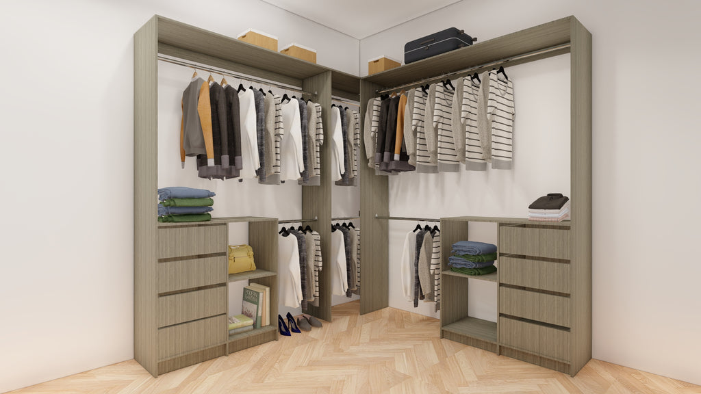 All wardrobes are customisable. If you require additional shelves, drawers, hangers or dividers you can add them via the dropdown menu options.