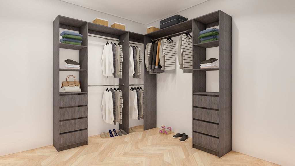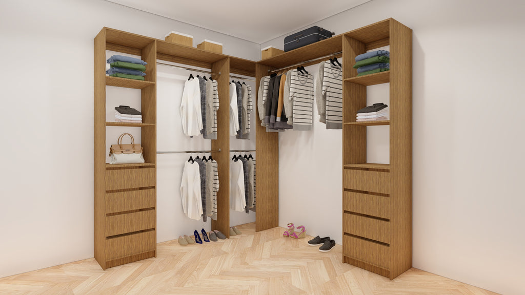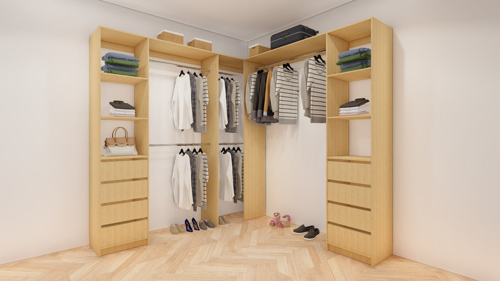 All wardrobes are customisable. If you require additional shelves, drawers, hangers or dividers you can add them via the dropdown menu options.