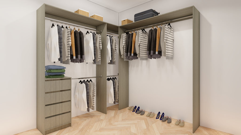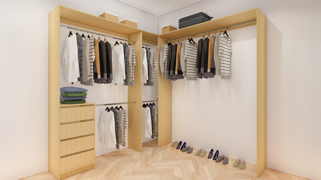 All wardrobes are customisable. If you require additional shelves, drawers, hangers or dividers you can add them via the dropdown menu options.