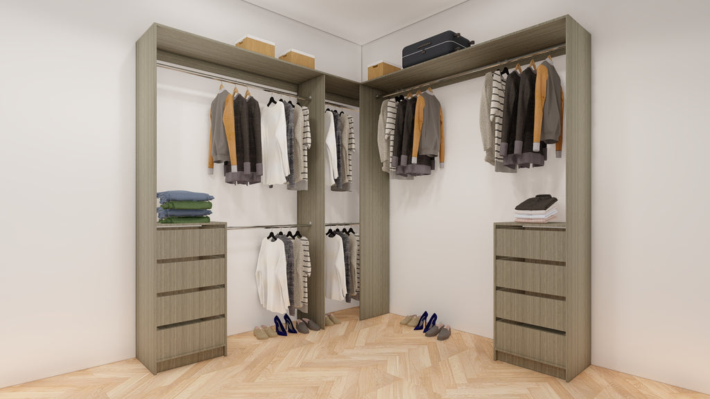All wardrobes are customisable. If you require additional shelves, drawers, hangers or dividers you can add them via the dropdown menu options.