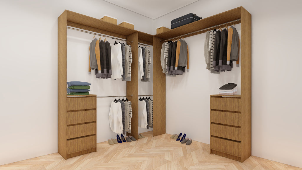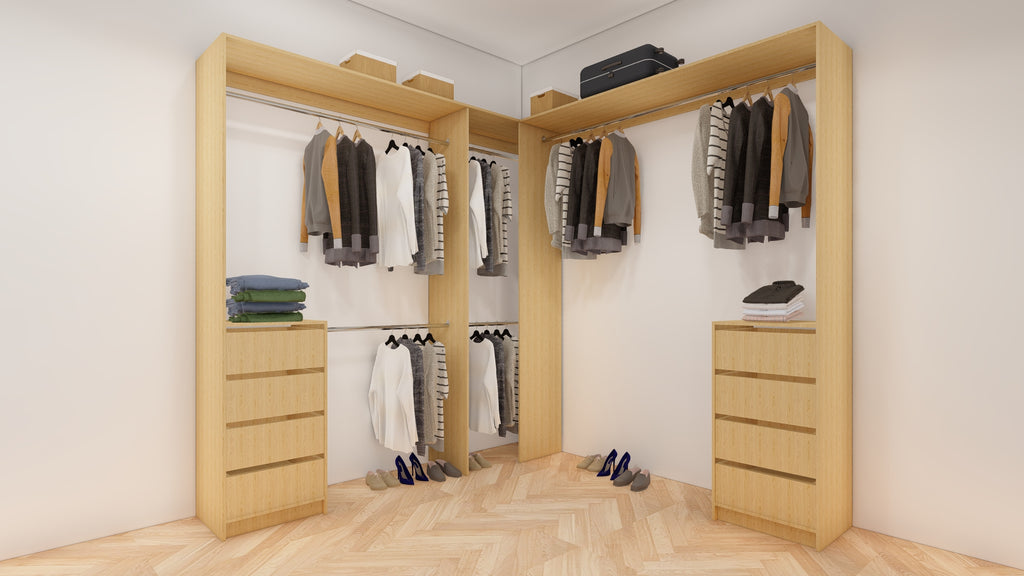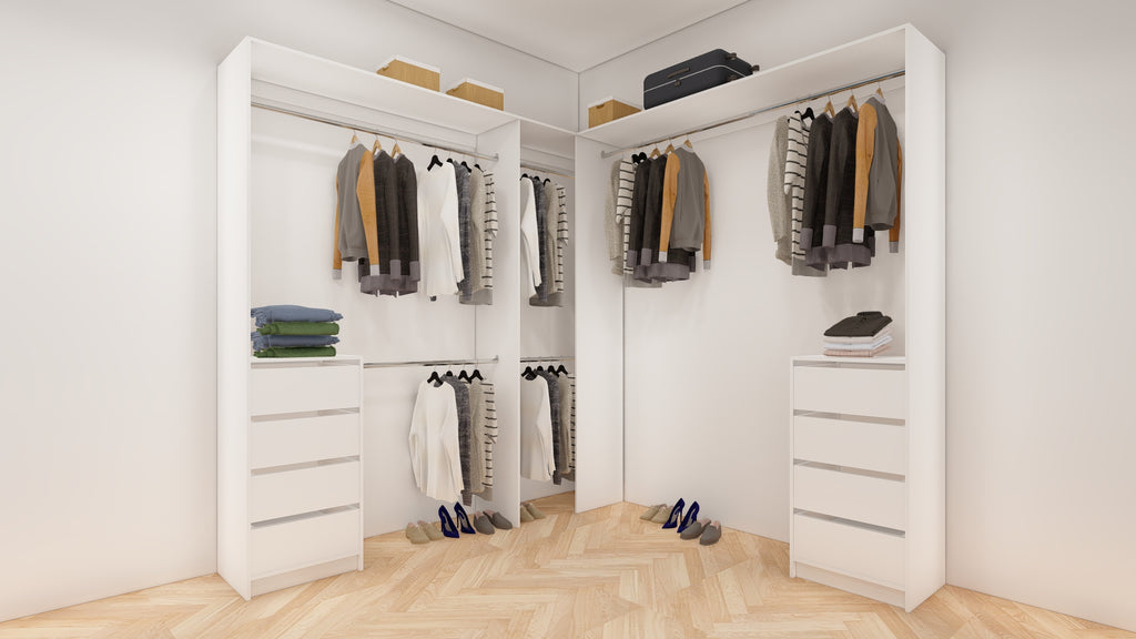 All wardrobes are customisable. If you require additional shelves, drawers, hangers or dividers you can add them via the dropdown menu options.