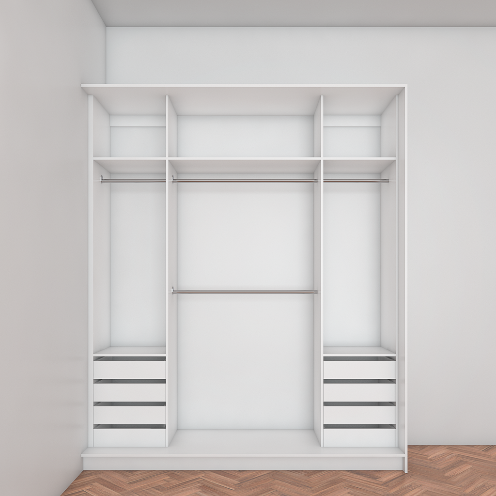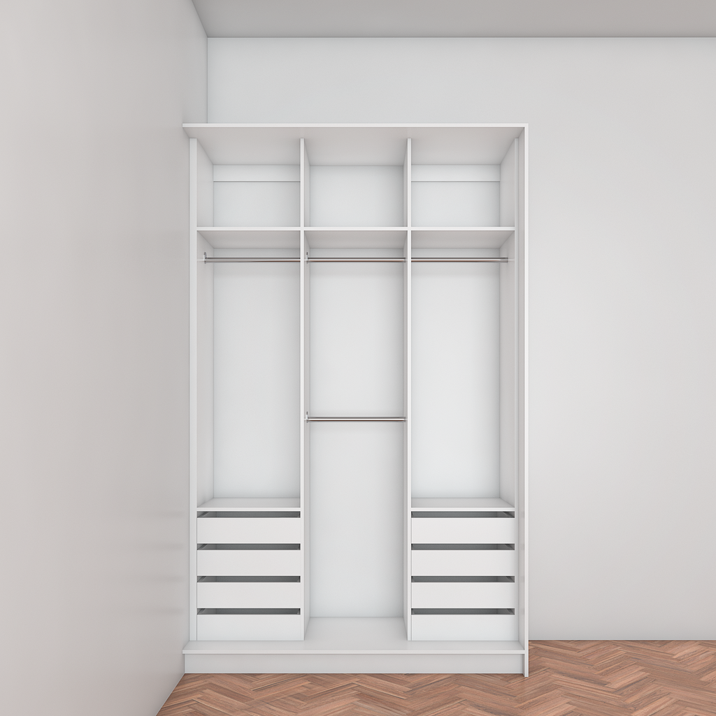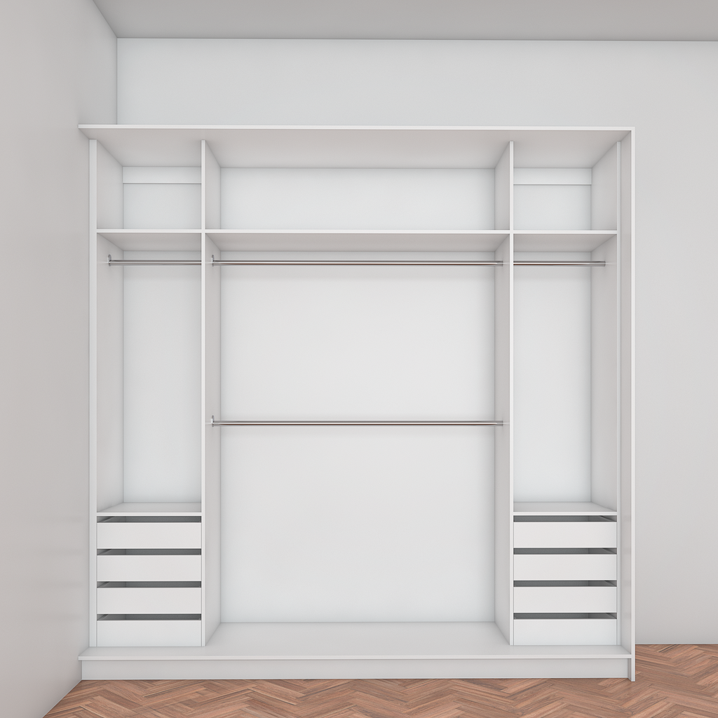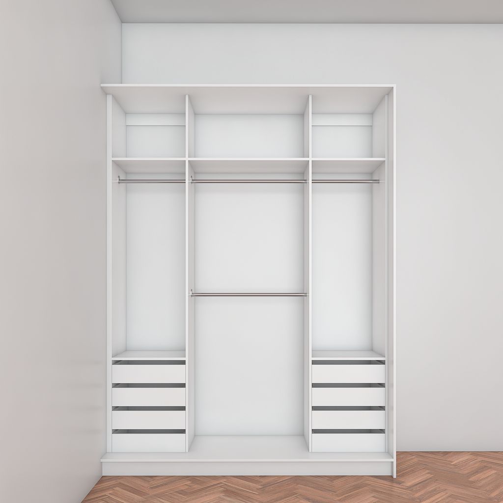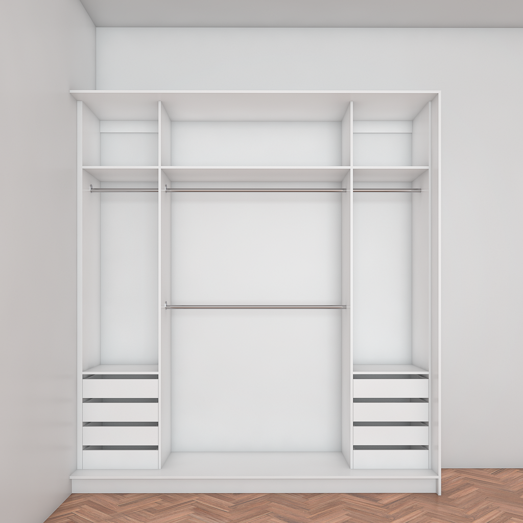 All wardrobes are customisable. If you require additional shelves, drawers, hangers or dividers you can add them via the dropdown menu options.