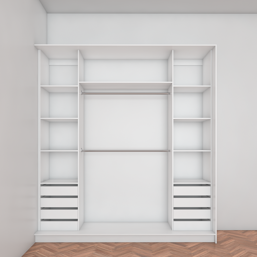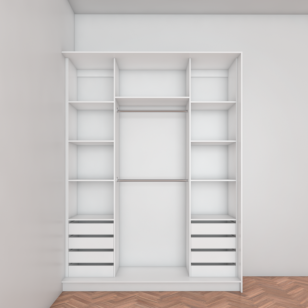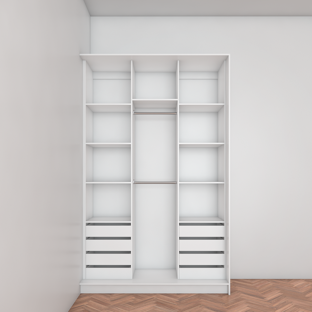 All wardrobes are customisable. If you require additional shelves, drawers, hangers or dividers you can add them via the dropdown menu options.