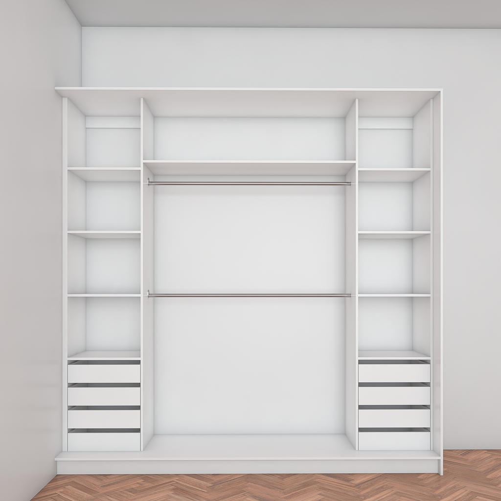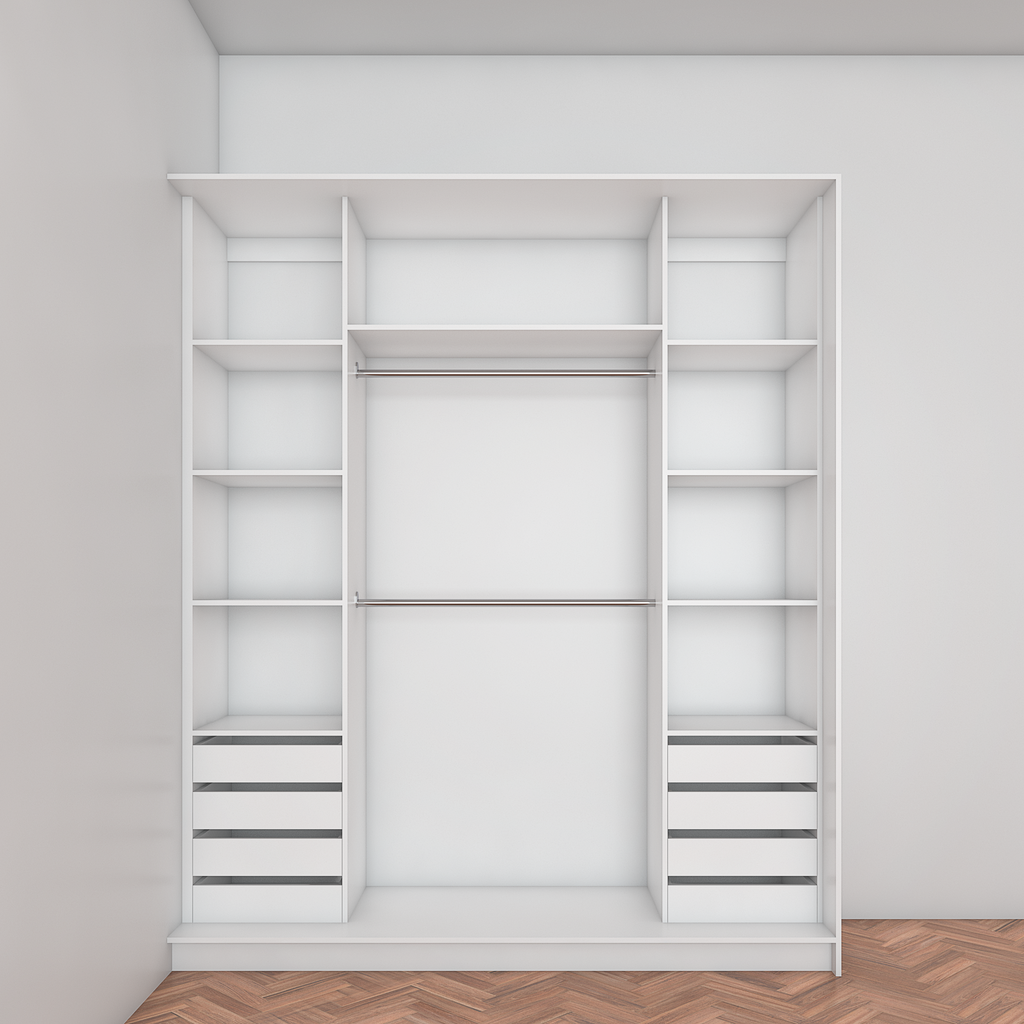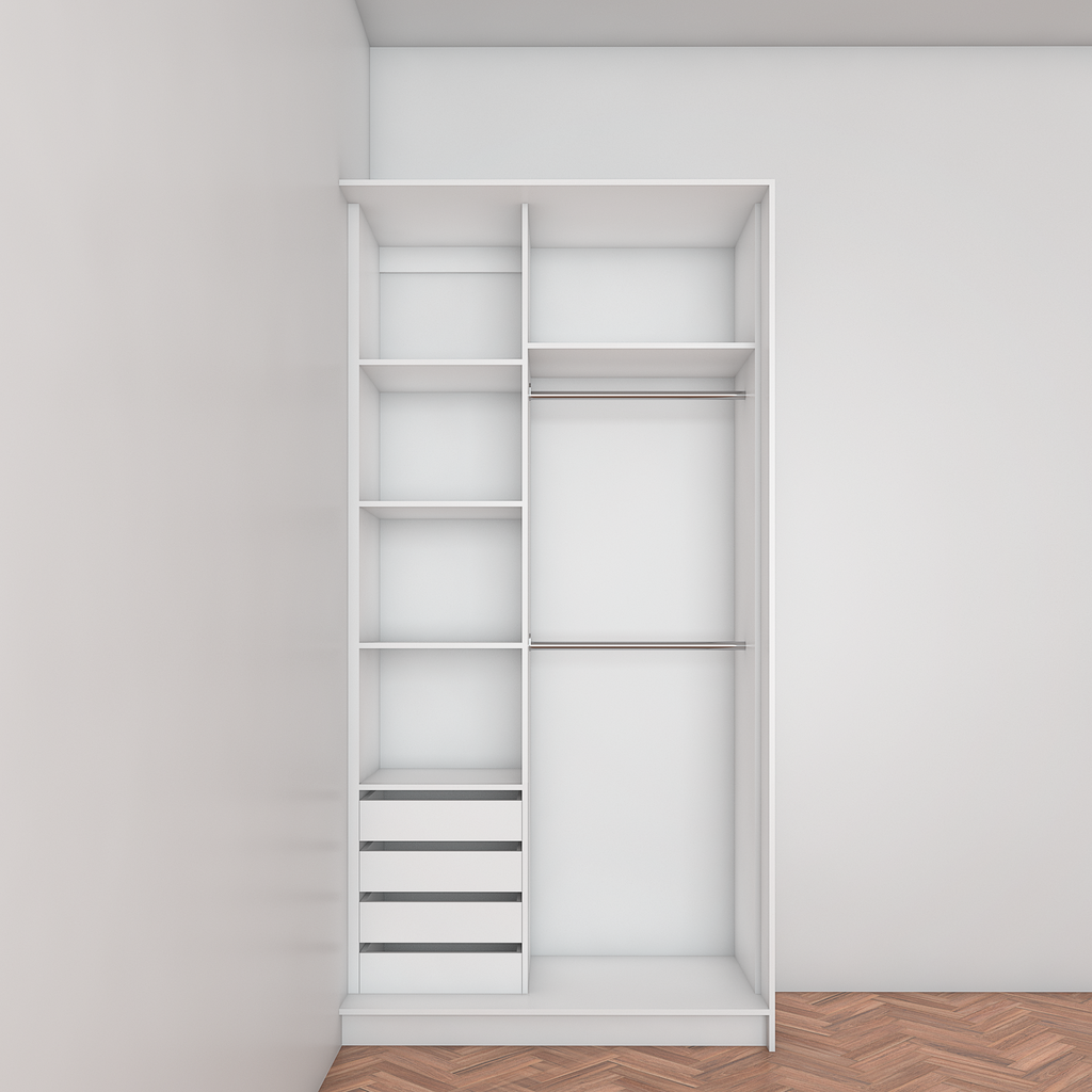 All wardrobes are customisable. If you require additional shelves, drawers, hangers or dividers you can add them via the dropdown menu options.