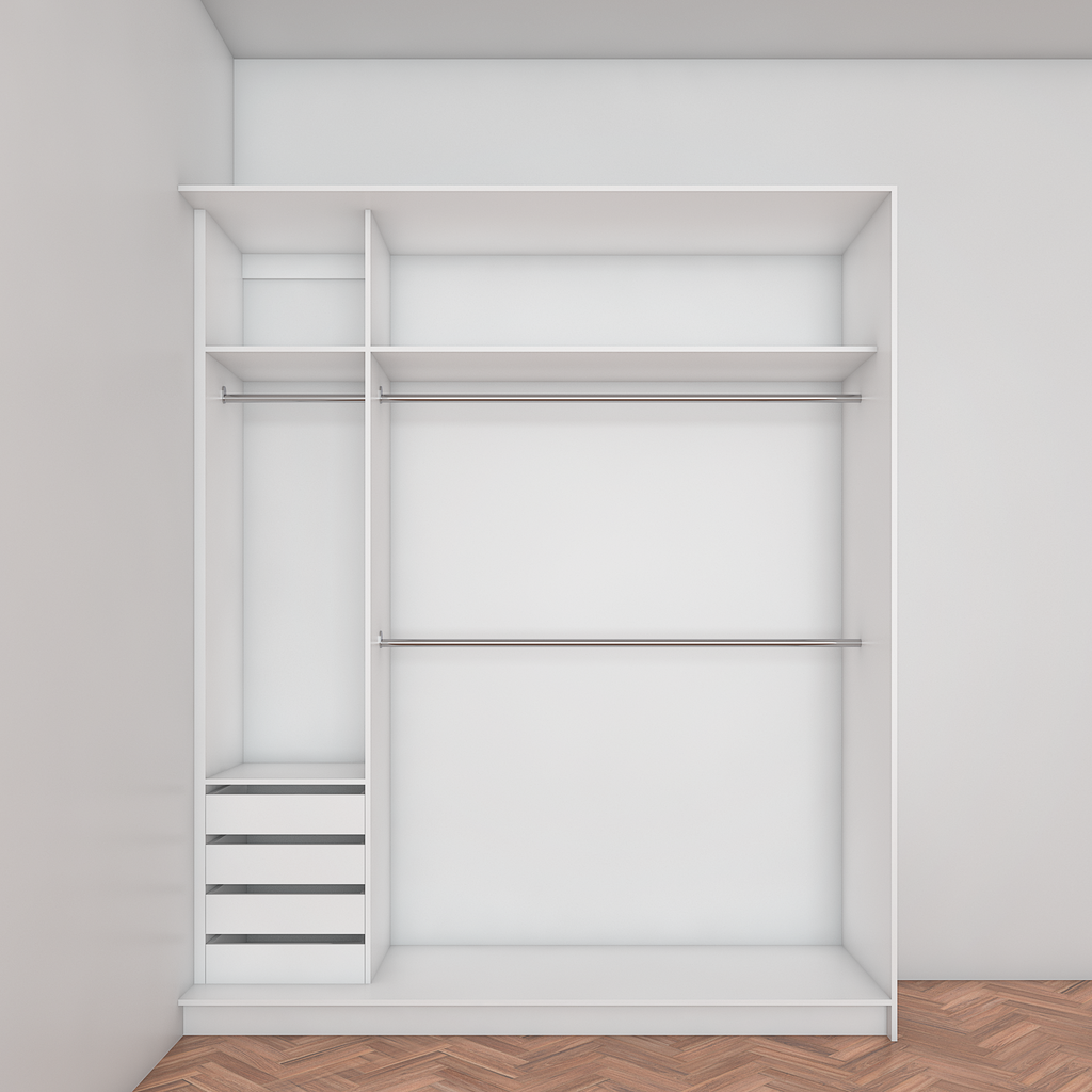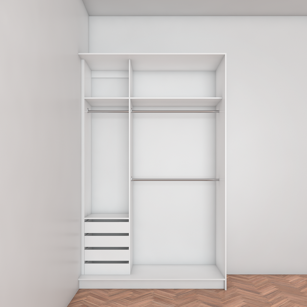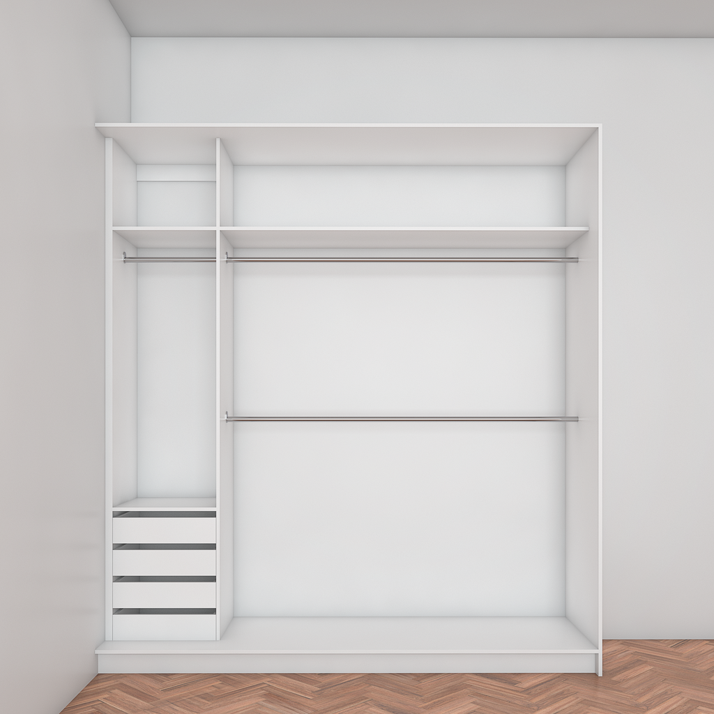 All wardrobes are customisable. If you require additional shelves, drawers, hangers or dividers you can add them via the dropdown menu options.