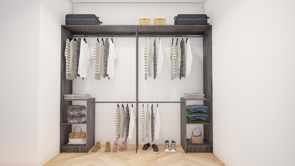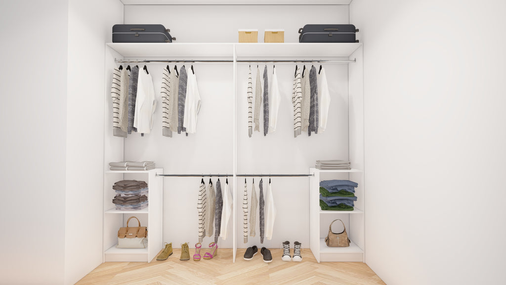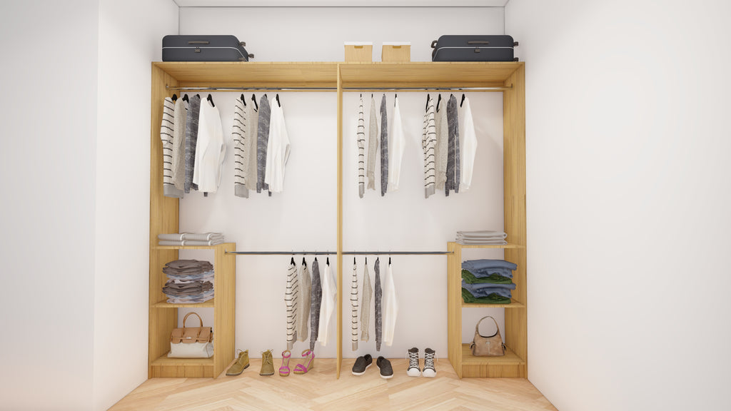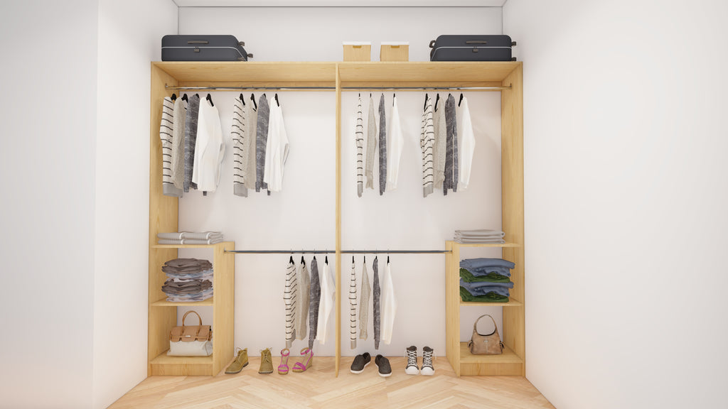 All wardrobes are customisable. If you require additional shelves, drawers, hangers or dividers you can add them via the dropdown menu options.