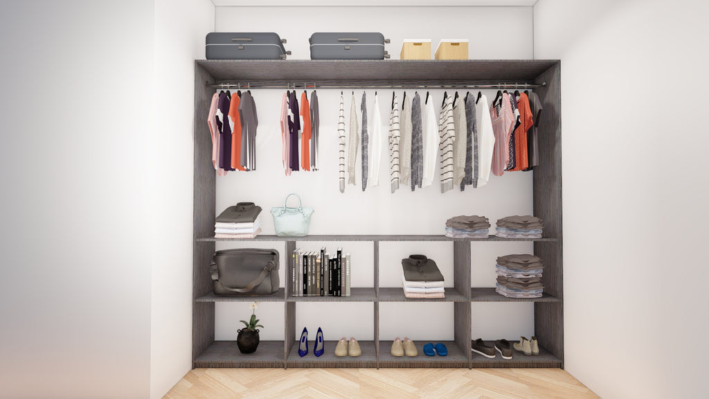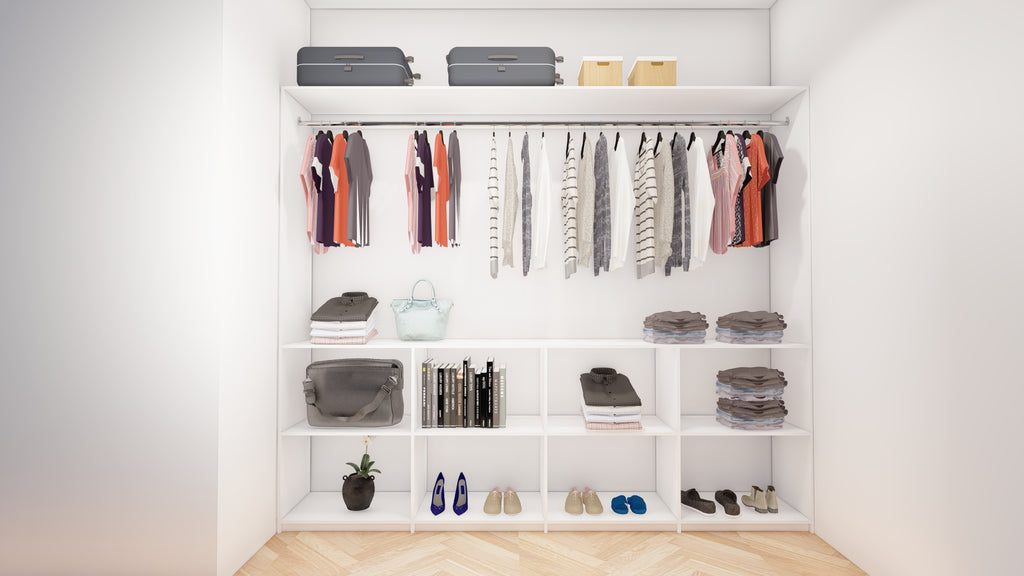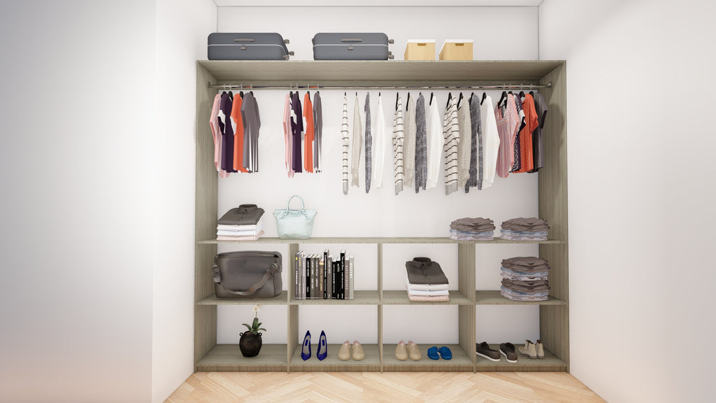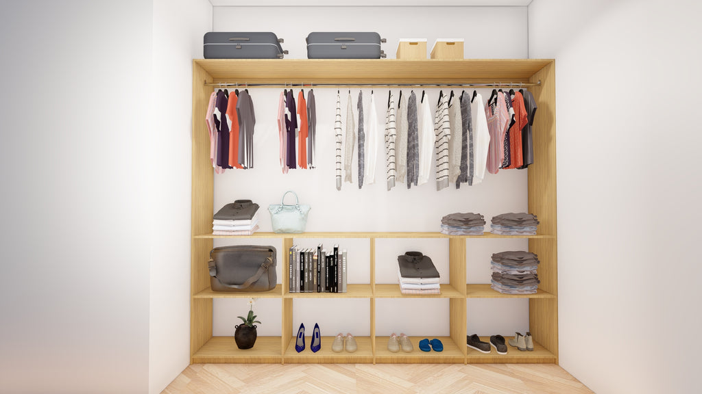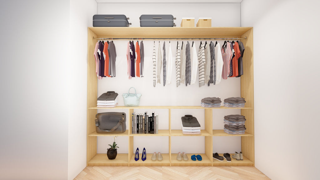 All wardrobes are customisable. If you require additional shelves, drawers, hangers or dividers you can add them via the dropdown menu options.